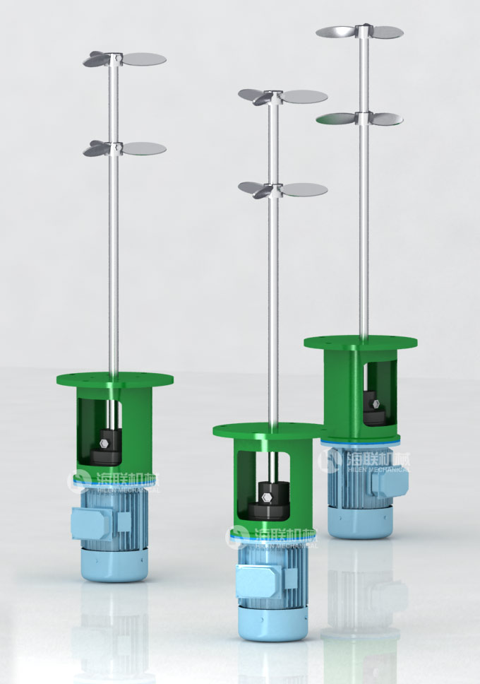 折葉式攪拌器 根據(jù)不同介質(zhì)的物理學(xué)性質(zhì)、容量、攪拌目的選擇相應(yīng)的攪拌器,對促進化學(xué)反應(yīng)速度、提高 效率能起到很大的作用。折葉式攪拌機適用于給水和排水工程中的混合池,反應(yīng)池原水與各種藥劑的混合及反映過程的攪拌,攪拌轉(zhuǎn)數(shù)一般在30-1400r/min。攪拌時能使物料在反應(yīng)釜內(nèi)循環(huán)流動,所起作用以容積循環(huán)為主,剪切作用較小,上下翻騰效果良好。當(dāng)需要有更大的流速時,反應(yīng)釜內(nèi)設(shè)有導(dǎo)流筒。